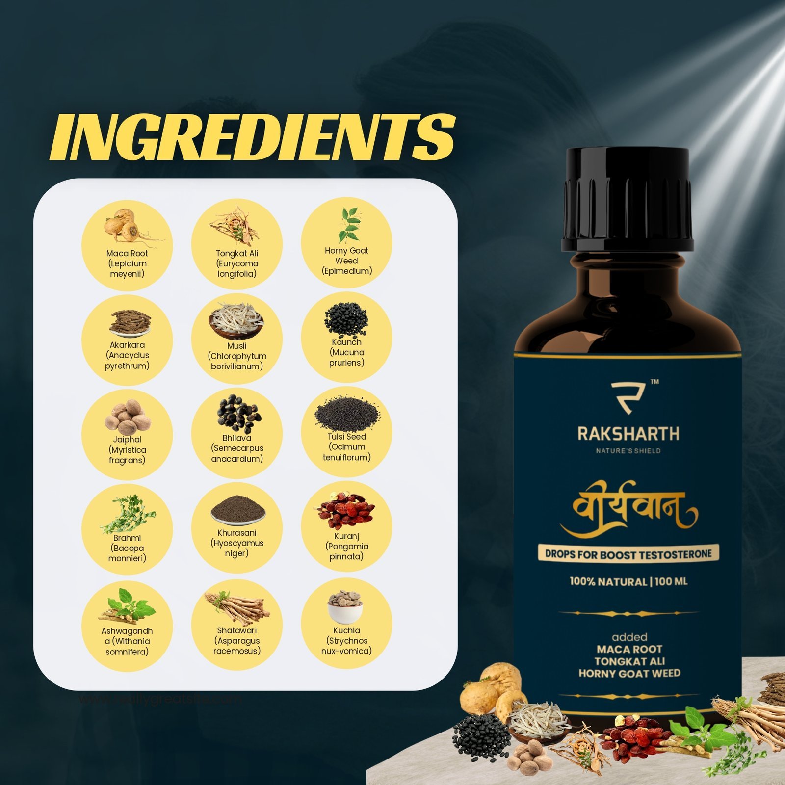 VIRYAVAAN combines 15+ time-tested herbs precisely measured to naturally boost testosterone, stamina, and virility.